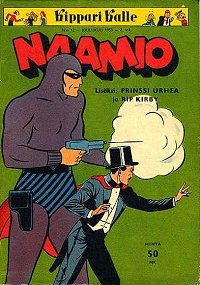 #KK7 Kippari Kalle 1953-12 Julkaisija: Sanoma Osakeyhtiö Sivut: 32 Väri: värillinen Hinta: 50 mk Lisätietoja: Mustanaamio esiintyy nimellä Naamio. Sisältää myös muita, ei Naamio -aiheisia tarinoita. Mustanaamio (Kippari Kalle): "Naamion seikkailuja: Ei 50 kilometriä kovempaa" |