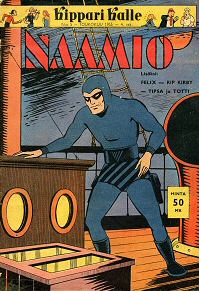 #KK16 Kippari Kalle 1955-05 Julkaisija: Sanoma Osakeyhtiö Sivut: 32 Väri: värillinen Hinta: 50 mk Lisätietoja: Mustanaamio esiintyy nimellä Naamio. Sisältää myös muita, ei Naamio -aiheisia tarinoita. Mustanaamio (Kippari Kalle): "Naamio ja merirosvot" |