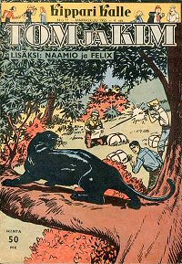 #KK21 Kippari Kalle 1955-11 Julkaisija: Sanoma Osakeyhtiö Sivut: 32 Väri: värillinen Hinta: 50 mk Lisätietoja: Mustanaamio esiintyy nimellä Naamio. Sisältää myös muita, ei Naamio -aiheisia tarinoita. Mustanaamio (Kippari Kalle): "Naamio ja “Kuristajat”" |