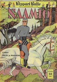 #KK22 Kippari Kalle 1955-12 Julkaisija: Sanoma Osakeyhtiö Sivut: 32 Väri: värillinen Hinta: 50 mk Lisätietoja: Mustanaamio esiintyy nimellä Naamio. Sisältää myös muita, ei Naamio -aiheisia tarinoita. Mustanaamio (Kippari Kalle): "Naamio ja “Mister Hogg”" |